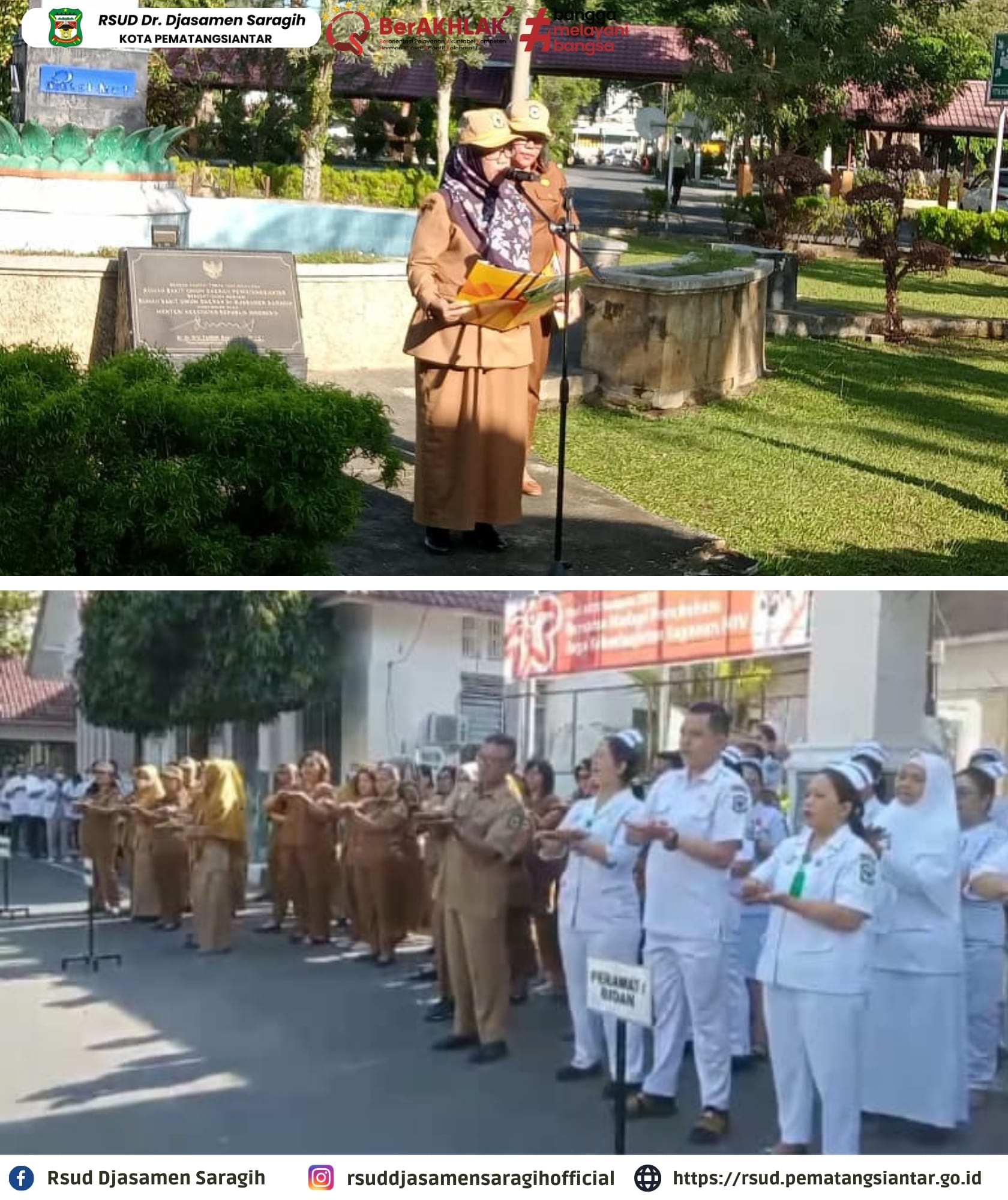 Pelaksanaan Apel di Lingkungan RSUD dr. Djasamen Saragih Kota Pematangsiantar dipimpin Oleh Wakil Direktur I dr. Yuliana Sara Erika Kurniawati,