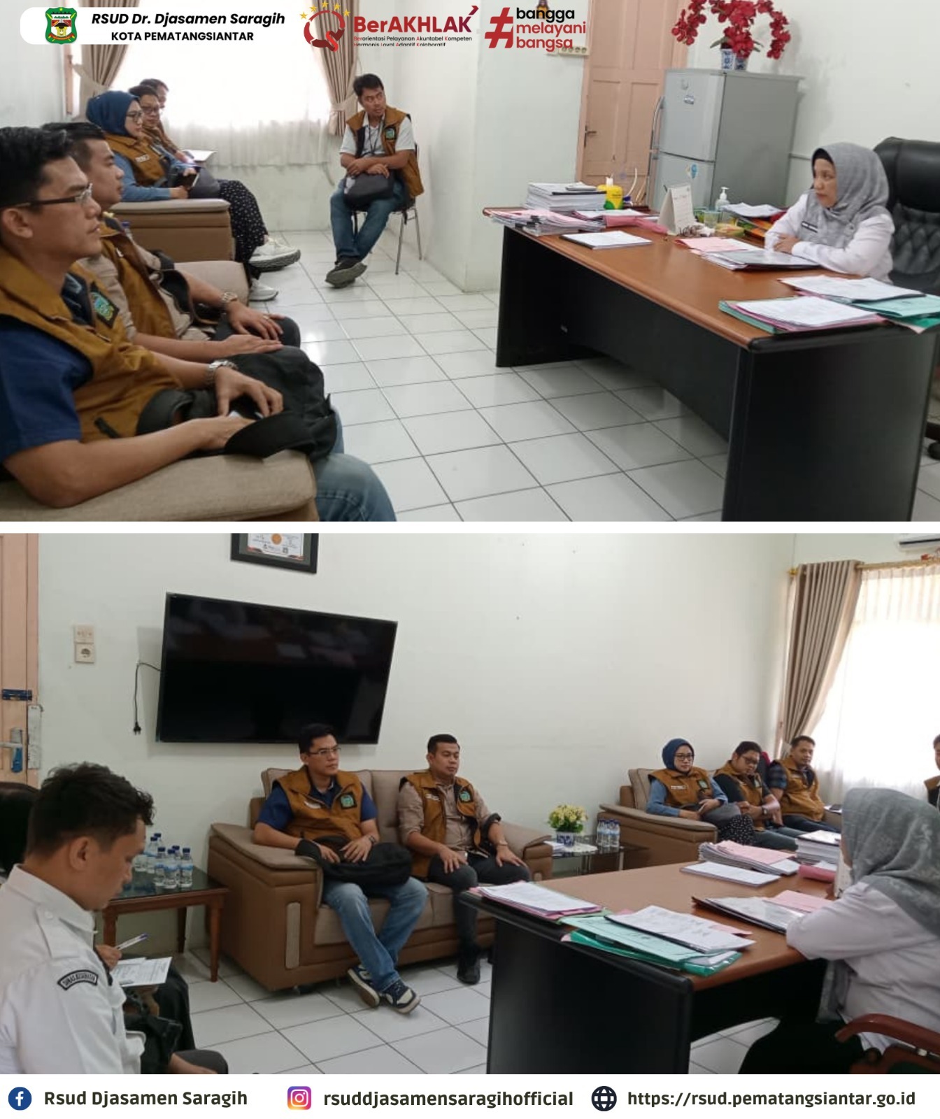 RSUD dr. Djasamen Saragih Kota Pematangsiantar menerima kunjungan Satgas Dinas Kesehatan Pemerintah Provinsi Sumatera Utara untuk monitoring pelayanan di ruang perawatan. Terima kasih atas arahan, evaluasi,