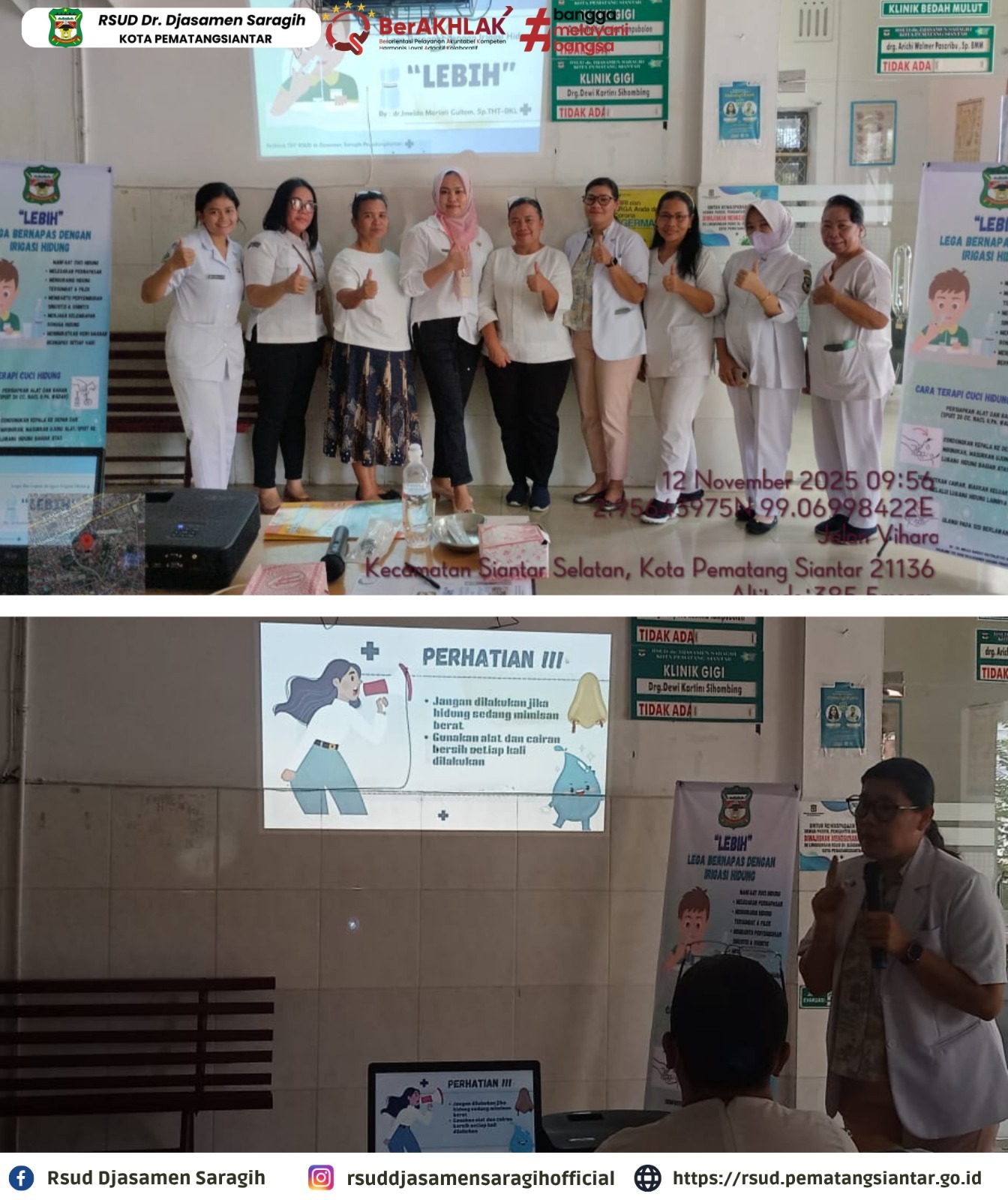 Kegiatan Edukasi tentang "LEBIH" Lega Bernafas dengan Irigasi Hidung oleh dr. Imelda Mariati Gultom, Sp. THT-BKL di Rsud dr. Djasamen Saragih Kota