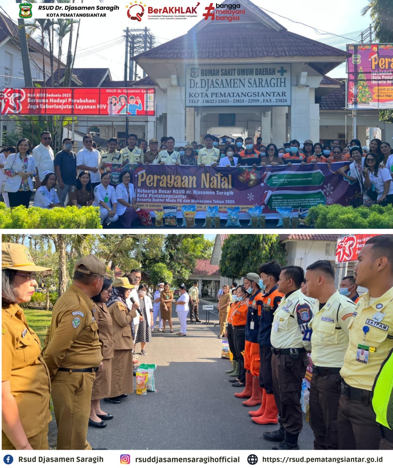 Dalam rangka menyambut Perayaan Natal, RSUD dr. Djasamen Saragih Kota Pematangsiantar beserta Dokter Muda FK dan Mahasiswa Tahun 2025 mengadakan kegiatan Bakti Sosial sebagai wujud nyata kasih dan kepedulian